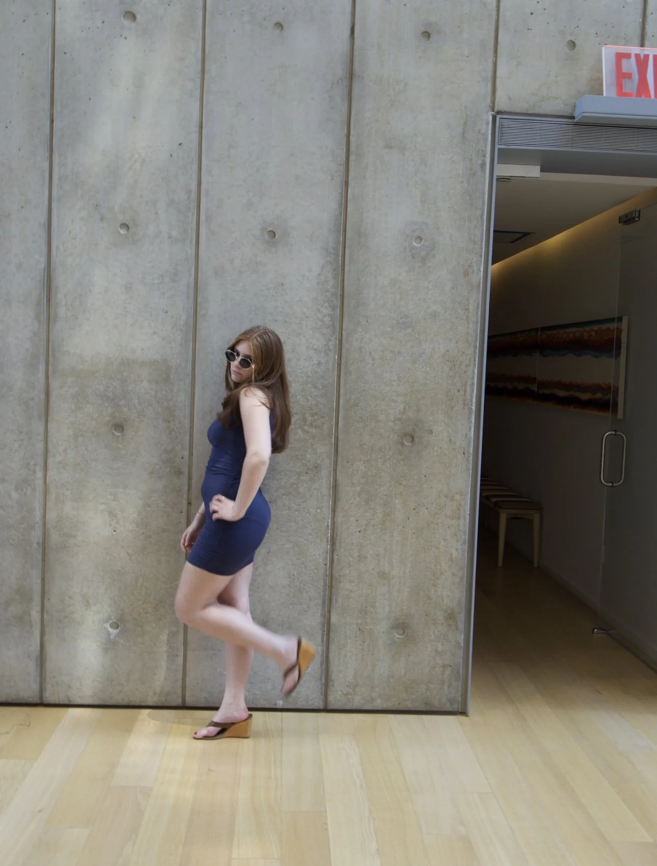 This simple, yet stunning “Carrie Bradshaw” inspired look captures sophisticated summer style in one photo. This navy mini dress compliments any body type, and requires nothing but a pair of 90s round, gold sunglasses to finish off the look. It’s simple, but effective.