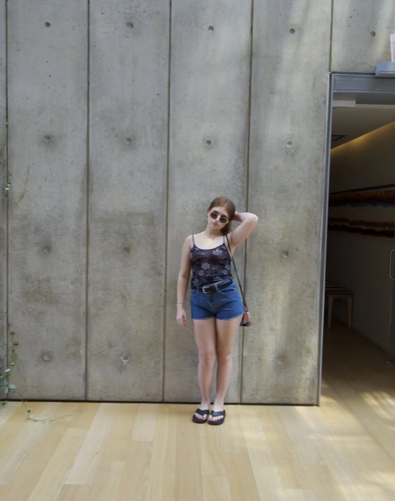 Laid back confidence meets subtle edge with this sheer black floral lace cami from βThe Blue Iris Boutique.β This top is balanced by high waisted dark wash denim shorts for a casual vibe. The classic black belt cinches the waist and compliments the black platform flip flops perfectly. Round sunglasses paired with a vintage multi-colored crossbody bag brings in a touch of retro vibe as these accessories close out the look.